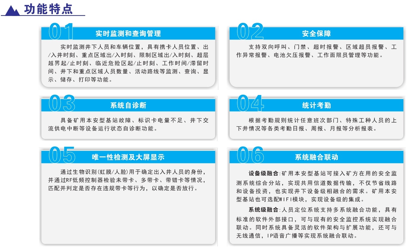 產(chǎn)品簡(jiǎn)介:KJ2356J煤礦井下人員精確定位系統(tǒng),采用超寬帶無(wú)線(UWB)、慣性測(cè)量單元(IMU)、到達(dá)時(shí)差法(TODA)等多源融合定位方法,實(shí)現(xiàn)井下移動(dòng)目標(biāo)定位精度小于0.3米的井下類GPS系統(tǒng)。該系統(tǒng)不僅強(qiáng)化了人員位置的精準(zhǔn)感知,實(shí)現(xiàn)煤礦井下作業(yè)人員位置的監(jiān)測(cè)管理、報(bào)警、各類數(shù)據(jù)查詢及報(bào)表功能。同時(shí)支持與車輛定位融合,將精準(zhǔn)定位技術(shù)應(yīng)用到井下機(jī)車、采掘裝備等各類設(shè)備。該系統(tǒng)具有定位精度高、抗干擾能力強(qiáng),系統(tǒng)容量大、安裝使用簡(jiǎn)便等特點(diǎn),對(duì)煤礦高效生產(chǎn)和應(yīng)急教援具有十分重要的意義。該系統(tǒng)不僅強(qiáng)化了人員位置的精準(zhǔn)感知,實(shí)現(xiàn)煤礦并下作業(yè)人員位置的監(jiān)測(cè)管理、報(bào)警、各類數(shù)據(jù)查詢及報(bào)表功能。同時(shí)支持與車輛定位融合,將精準(zhǔn)定位技術(shù)應(yīng)用到井下機(jī)車、采掘裝備等各類設(shè)備。